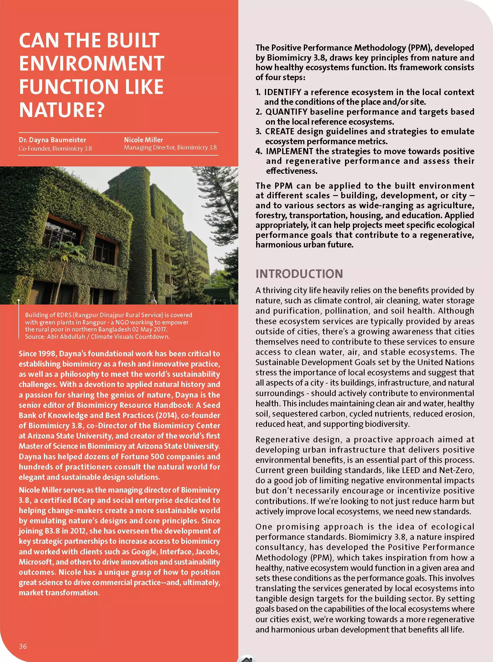 The PPM can be applied to the built environment at different scales – building, development, or city – and to various sectors as wide-ranging as agriculture, forestry, transportation, housing, and education. Applied appropriately, it can help projects meet specific ecological performance goals that contribute to a regenerative, harmonious urban future.