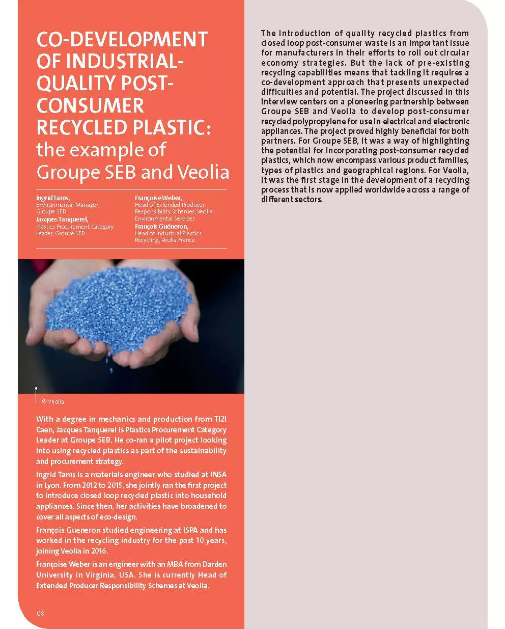 The introduction of quality recycled plastics from closed loop post-consumer waste is an important issue for manufacturers in their efforts to roll out circular economy strategies. But the lack of pre-existing recycling capabilities means that tackling it requires a co-development approach that presents unexpected difficulties and potential. The project discussed in this interview centers on a pioneering partnership between Groupe SEB and Veolia to develop post-consumer recycled polypropylene for use in electrical and electronic appliances.