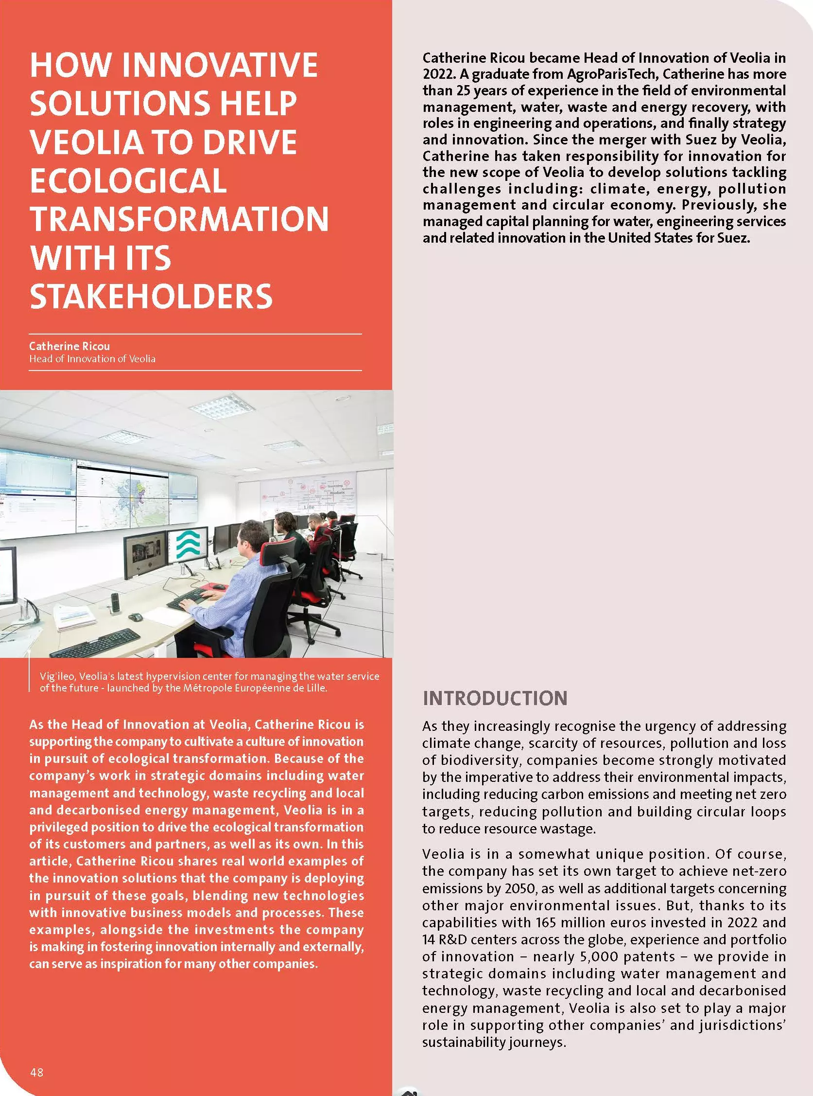 Catherine Ricou became Head of Innovation of Veolia in 2022. A graduate from AgroParisTech, Catherine has more than 25 years of experience in the field of environmental management, water, waste and energy recovery, with roles in engineering and operations, and finally strategy and innovation. Since the merger with Suez by Veolia, Catherine has taken responsibility for innovation for the new scope of Veolia to develop solutions tackling challenges including: climate, energy, pollution management and circular economy. Previously, she managed capital planning for water, engineering services and related innovation in the United States for Suez.