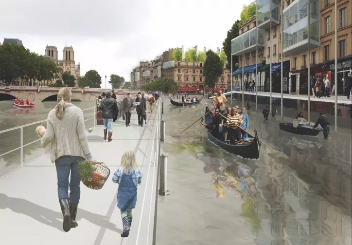 Le quai des Grands Augustins inondés Extrait de Paris + 2°C - commande mairie de Paris, 2010 © ET ALORS, Y. Gourvil et C. Leroux - www.etalors.eu