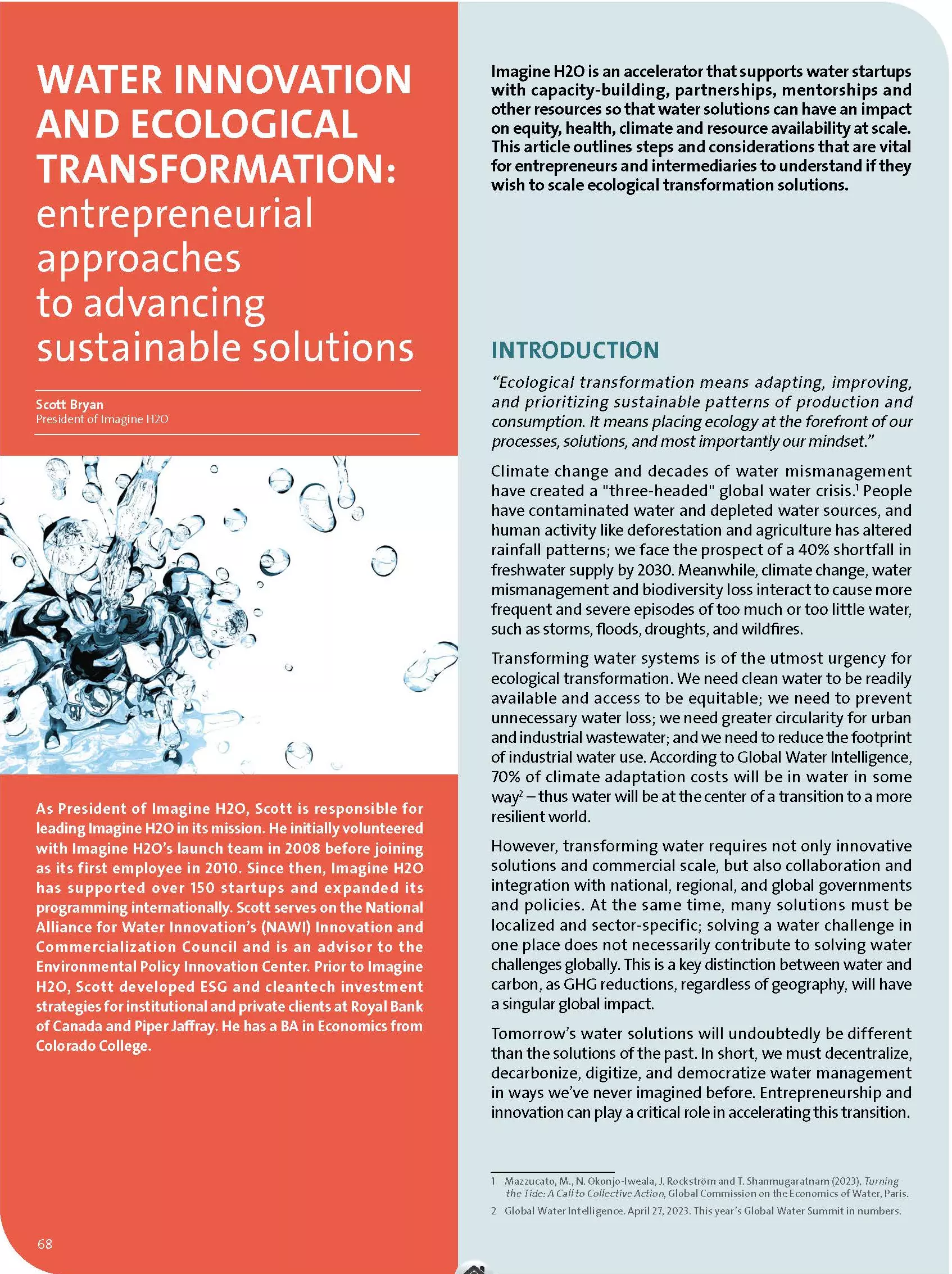 Imagine H2O is an accelerator that supports water startups with capacity-building, partnerships, mentorships and other resources so that water solutions can have an impact on equity, health, climate and resource availability at scale.