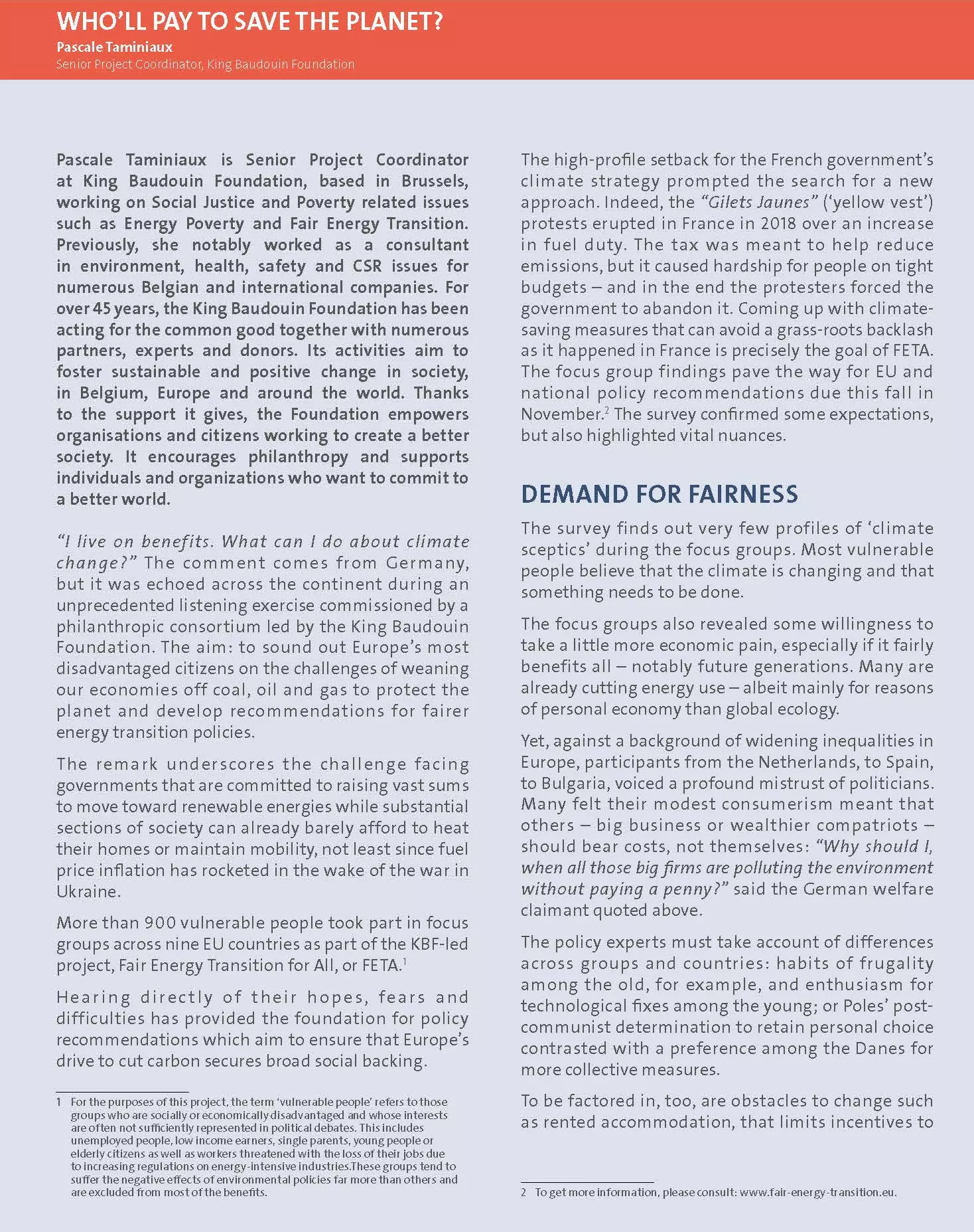 “I live on benefits. What can I do about climate change?” The comment comes from Germany, but it was echoed across the continent during an unprecedented listening exercise commissioned by a philanthropic consortium led by the King Baudouin Foundation. The aim: to sound out Europe’s most disadvantaged citizens on the challenges of weaning our economies off coal, oil and gas to protect the planet and develop recommendations for fairer energy transition policies.