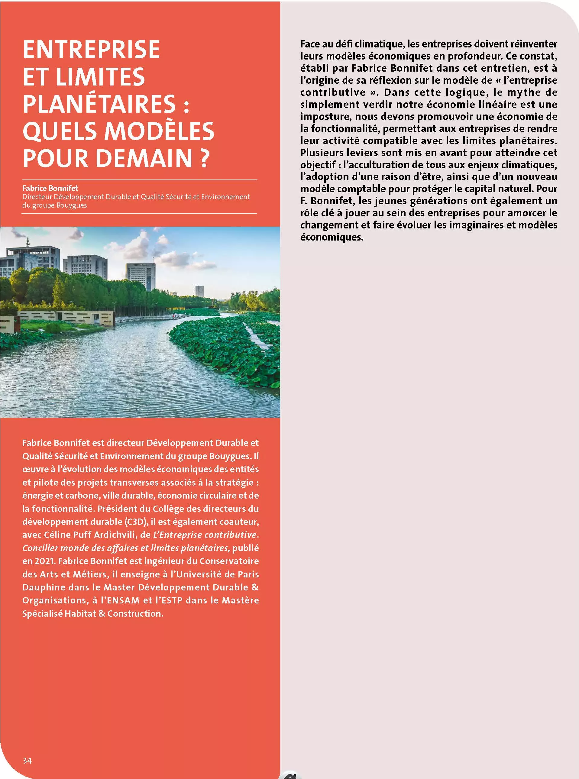 Face au défi climatique, les entreprises doivent réinventer leurs modèles économiques en profondeur. Ce constat, établi par Fabrice Bonnifet dans cet entretien, est à l’origine de sa réflexion sur le modèle de « l’entreprise contributive ». Dans cette logique, le mythe de simplement verdir notre économie linéaire est une imposture, nous devons promouvoir une économie de la fonctionnalité, permettant aux entreprises de rendre leur activité compatible avec les limites planétaires.