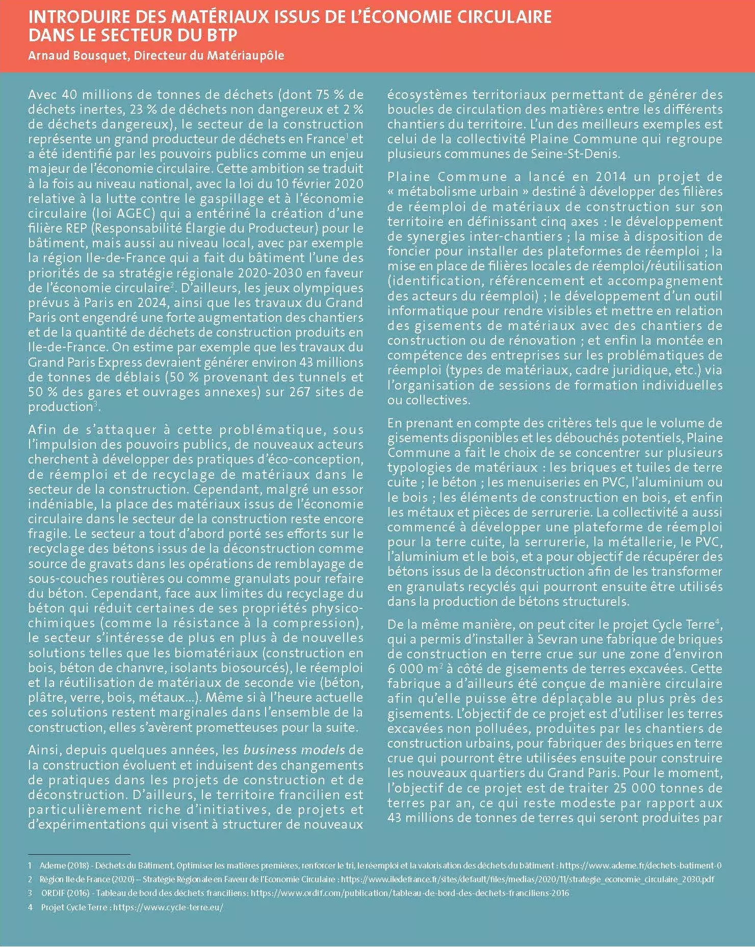2 Région Ile de France (2020) – Stratégie Régionale en Faveur de l’Economie Circulaire : https://www.iledefrance.fr/sites/default/fi les/medias/2020/11/strategie_economie_circulaire_2030.pdf