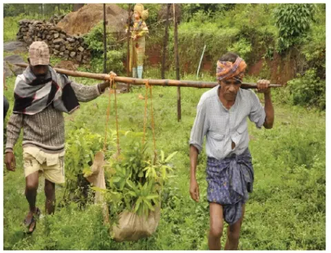 Mots-clés : OMD, Adivasi, crédits carbone, système de positionnement mondial, GPS,agriculture durable à faibles intrants externes, livelihoods, Patta, coordinateur horticole rural
