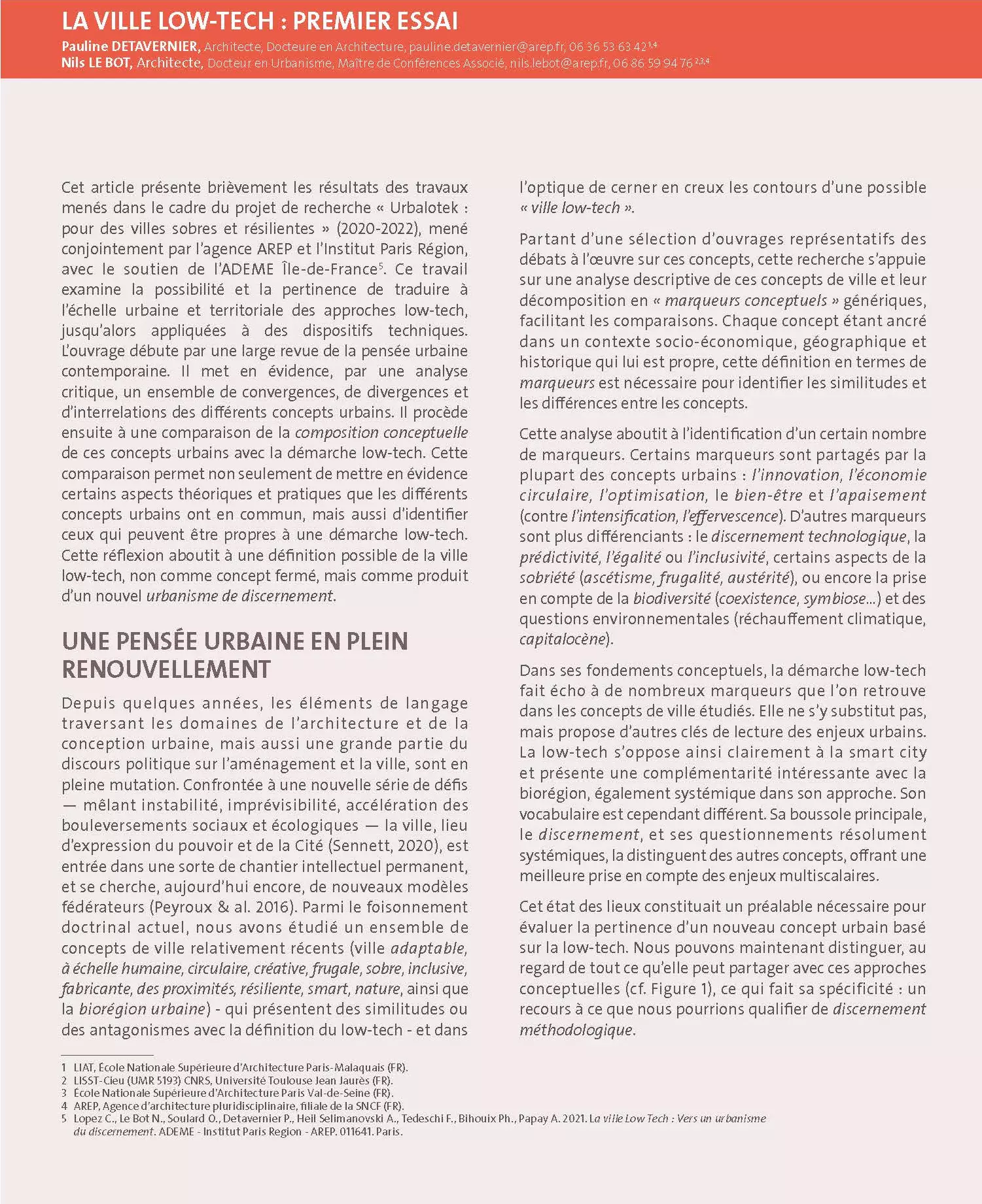 Cet article présente brièvement les résultats des travaux menés dans le cadre du projet de recherche « Urbalotek : pour des villes sobres et résilientes » (2020-2022), mené conjointement par l’agence AREP et l’Institut Paris Région, avec le soutien de l’ADEME Île-de-France.